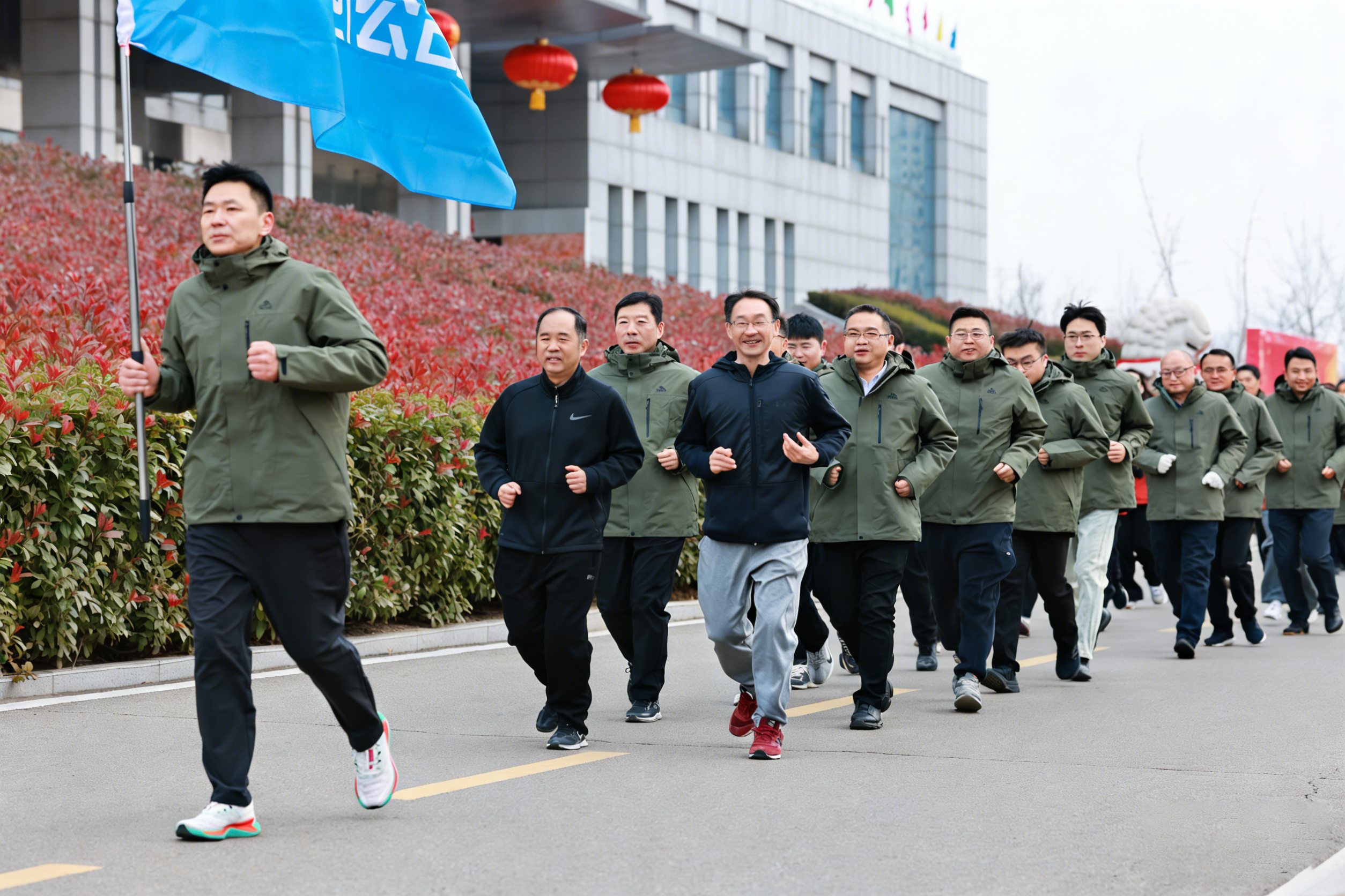在李躍文、翁明月的帶領(lǐng)下,來自公司機(jī)關(guān)各部室中心、設(shè)備租賃公司、救護(hù)大隊(duì)、新能源公司、科瑞分公司、煤炭貿(mào)易公司的干部職工代表,組成14支長跑隊(duì)伍,開啟了新年第一跑。